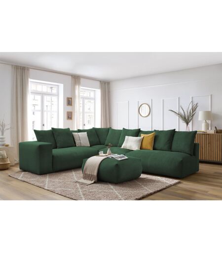 Canapé d'angle fixe modulable VOLTAIRE avec 2 chauffeuses 2 places, 1 angle, 1 chauffeuse 1 place et 1 pouf vert angle gauche BOBOCHIC 7 places Angle gauche
