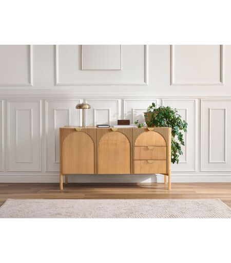 Buffet 2 portes 3 tiroirs 135 cm LOLA motif arrondi et placage frêne massif BOBOCHIC