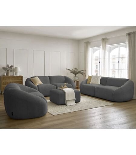 Ensemble canapé droit fixe 3 + 2 places + fauteuil TINA tissu bouclette avec pouf gris foncé BOBOCHIC