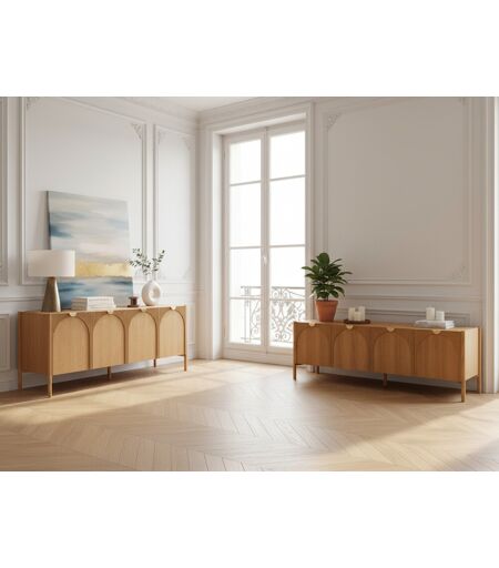 Ensemble LOLA avec buffet 178 cm + meuble TV 178 cm motif arrondi et placage frêne massif BOBOCHIC