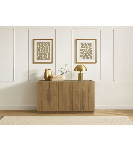 Buffet 3 portes 140 cm MARION effet chêne et travertin BOBOCHIC