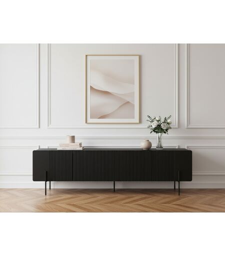 Meuble TV 2 portes 2 tiroirs 200 cm MATHILDE pieds noirs BOBOCHIC
