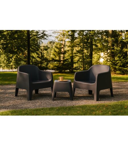 Salon de jardin MILOS avec table basse carrée 49 cm + 2 fauteuils gris foncé BOBOCHIC