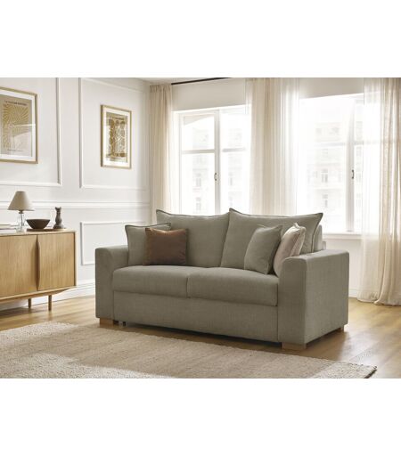 Canapé droit convertible ouverture express AUGUSTIN tissu texturé taupe 140x200 BOBOCHIC 3 places 140x200
