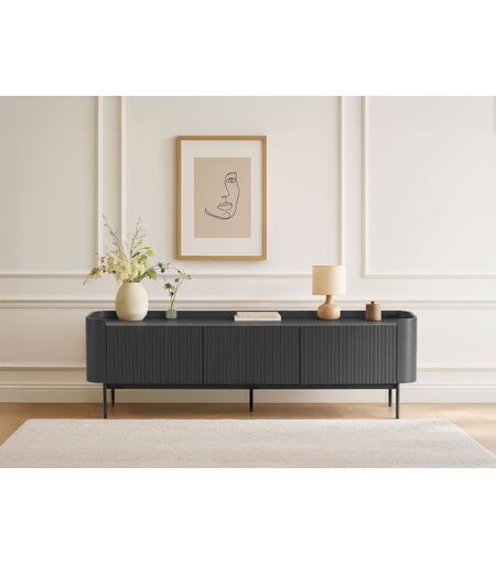 Meuble TV 3 portes 180 cm JAY effet tasseaux noir BOBOCHIC