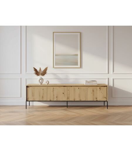 Meuble TV 4 portes 167 cm LENARA avec tasseaux et LED marron clair BOBOCHIC