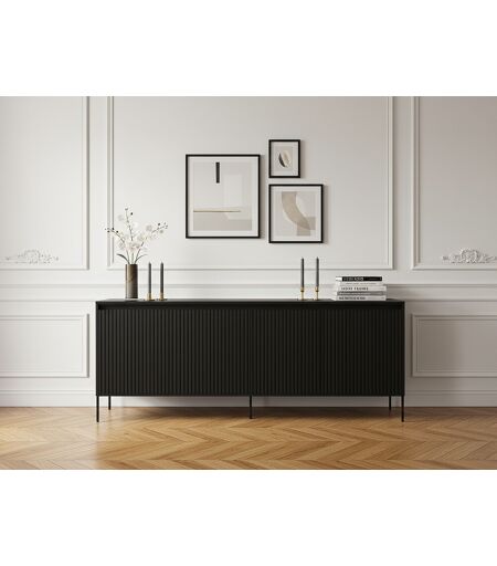 Buffet 4 portes 193 cm LENARA avec tasseaux et LED noir BOBOCHIC