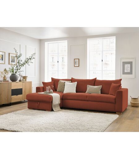 Canapé d'angle réversible convertible ouverture express AUGUSTIN tissu bouclette orange 140x200 BOBOCHIC 3 places 140x200
