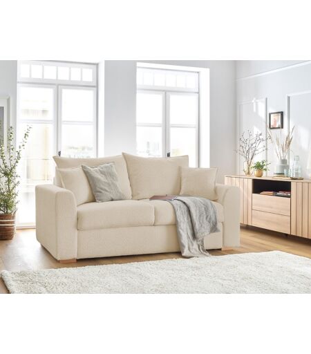Canapé droit convertible ouverture express AUGUSTIN tissu bouclette beige 140x200 BOBOCHIC 3 places 140x200