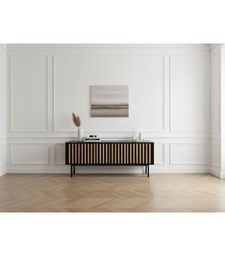 LA COLLECTION Envie d'apporter une nouvelle atmosphère à votre séjour ? Découvrez la nouvelle création originale de BOBOCHIC : la collection CORNEILLE. Grâce à un visuel de caractère et très tendance, cette collection de meubles design saura s'intégrer dans votre séjour et en sublimera, sans le moindre doute, la décoration. Outre son visuel unique et élégant, cette gamme se distingue aussi par ses meubles disposant de nombreuses options de rangement, de quoi vous assurer de garder un séjour parfaitement organisé en toute simplicité ! LE PRODUIT Une nouvelle création originale BOBOCHIC Les créations originales BOBOCHIC, comme la collection CORNEILLE, se distinguent des autres pour de nombreuses raisons. Tout d'abord, ce sont des gammes de produits exclusives, que vous ne trouverez nulle part ailleurs. Cette nouvelle collection CORNEILLE, designée par notre bureau parisien, exprime à la perfection notre sens du style et de l'élégance, tout en bénéficiant de toute l'expérience de nos artisans européens. Ainsi, vous avez la garantie de profiter de meubles élégants et tendance, de grande qualité, à même de sublimer et décorer votre intérieur pour de nombreuses années ! Une collection design et tendance pour votre séjour Là où la collection CORNEILLE marque sa différence, c'est bien au niveau de son visuel. Celle-ci exprime à merveille le mariage entre le style moderne, avec ses lignes épurées, et industriel, pour son association de coloris. En effet, avec leur structure noire et leur façade en tasseaux de bois massif couleur chêne, les meubles de cette gamme se distingueront comme aucun autre dans votre intérieur. Cette combinaison de coloris leur offre un vrai caractère, les distinguant de tous les autres meubles du séjour. Sans oublier que cette collection profite aussi d'une finition laquée. Cette dernière offre une grande douceur au toucher. De ce fait, cela permet aux meubles de réellement se démarquer dans votre déco, tout en profitant d'un confort et d'un toucher agréable lors de leur utilisation. Créez-vous un espace télé très tendance L'espace réservé à la télévision (et par association au canapé) est d'une importance capitale dans nos intérieurs modernes. Il faut que ce dernier soit un mélange parfait entre un environnement beau et accueillant, tout en étant pratique et facile d'utilisation. De ce fait, le meuble TV CORNEILLE se positionne comme le choix idéal pour n'importe quel intérieur. Comme nous l'avons vu précédemment, il s'imposera comme un superbe meuble très tendance dans votre intérieur et illuminera votre déco avec son caractère et son élégance. Bien évidemment, ce meuble télé se distingue aussi dans ses fonctionnalités, notamment par sa petite taille, idéale pour les plus petits espaces. Aussi, ses 3 portes dissimulent de larges et spacieux rangements. Autant vous dire qu'avec ce meuble télé dans votre intérieur, vous pourrez vous créer un coin télé élégant, beau et surtout particulièrement facile et pratique d'utilisation !... ...