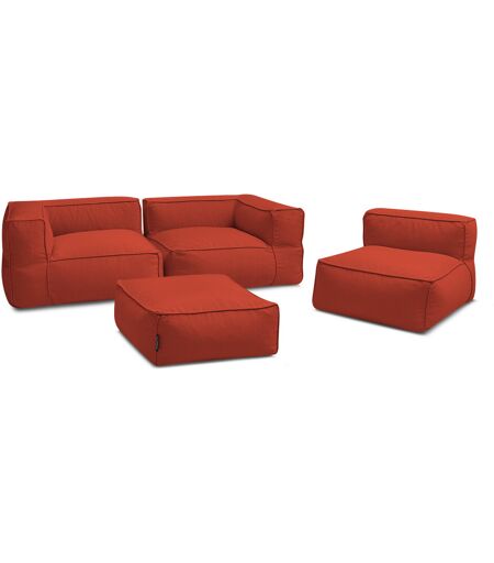 Canapé de jardin modulable GIULIA avec bâche de protection, 2 angles, 1 chauffeuse 1 place et 1 pouf rouge BOBOCHIC