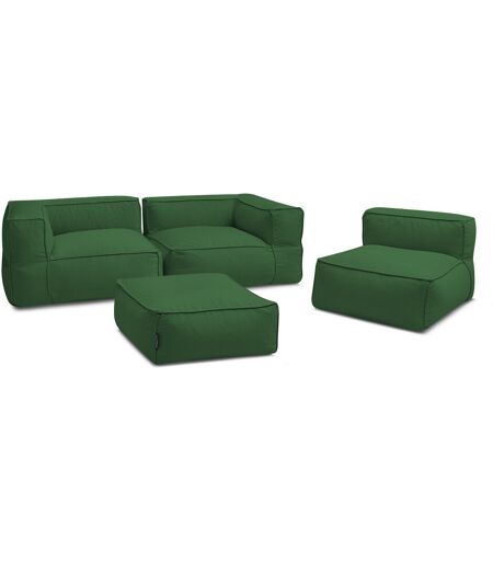 Canapé de jardin modulable GIULIA avec bâche de protection, 2 angles, 1 chauffeuse 1 place et 1 pouf vert BOBOCHIC