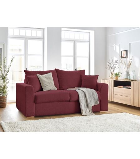 Canapé droit convertible ouverture express AUGUSTIN tissu bouclette rouge 160x200 BOBOCHIC 3 places 160x200