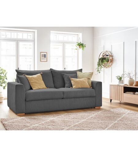 Canapé droit convertible ouverture express AUGUSTIN velours côtelé gris foncé 140x200 BOBOCHIC 3 places 140x200