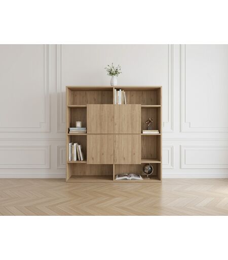 Bibliothèque 4 portes H.170 cm BELLAMY effet chêne BOBOCHIC