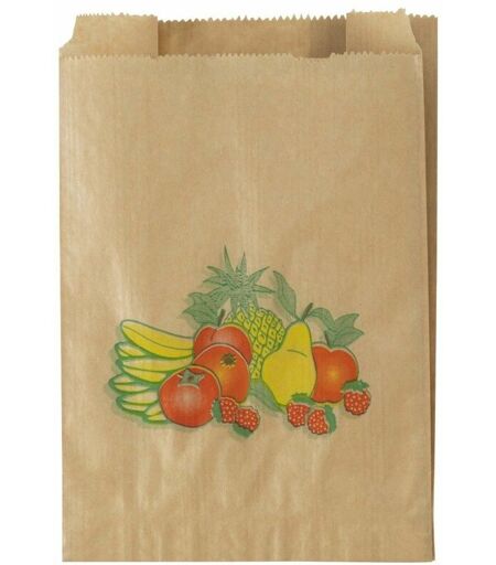 En kraft Alios® naturel, impression primeur. Pour le transport à moindre coût, l'emballage et la conservation de vos fruits et légumes. Grande résistance à l'humidité. Apte au contact alimentaire direct d'aliments secs ou gras. Disponible avec fenêtre en polypropylène (PP). Conditionné en colis de 1 000 sacs. Grammage (g/m2): 40 Colis de: 1000 Dimensions ouverturexhxS (cm): 14X21X9 Contenance (Kg): 0.5 ...