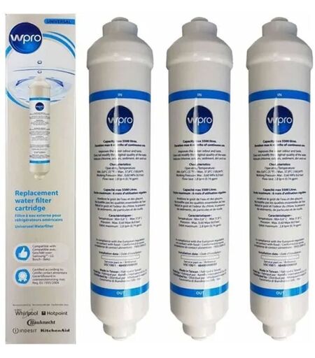 Whirlpool Lot de 3 cartouches filtre à eau d'origine WPRO USC100 Réfrigérateur congélateur (481281718629 484000008553 AEG ARISTON HOTPOINT ARTHUR MARTIN ELECTROLUX DAEWOO DE DIETRICH HAIER LG SAMSUNG SIEMENS)