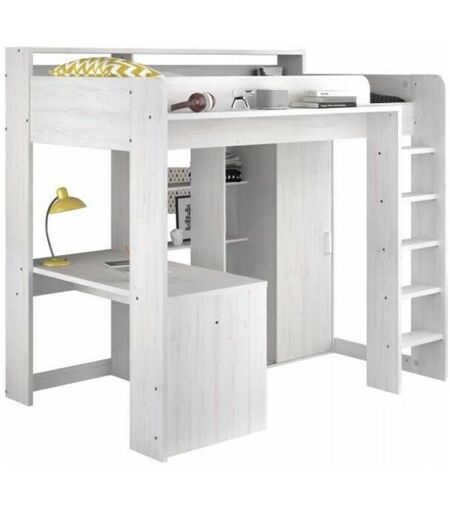 Le lit combiné mezzanine enfant PARISOT Lena est un meuble pratique et fonctionnel qui allie couchage en hauteur, rangement et bureau pour optimiser l'espace dans une chambre d'enfant. La structure en panneau de particules revetus de papier décor Pin Petterson est solide et durable. Le lit est livré avec un sommier panneau inclus et peut accueillir un matelas de 90 x 200 cm (non inclus). ...