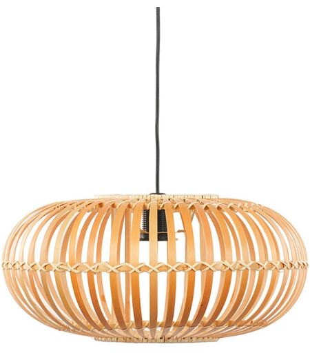 Éclairez votre intérieur avec un charme naturel et discret grâce à cette suspension en bambou. Son effet strié s'accorde avec sa forme ronde allongée. INFORMATIONS COMPLÉMENTAIRES ! Le produit a besoin de temps pour retrouver sa forme définitive après déballage. C'est pourquoi nous vous recommandons de le déballer dès que possible et de lui laisser jusqu'à 48 heures pour se redresser complètement. Ce produit étant confectionné à la main et à partir de matériaux naturels, il peut présenter de légères variations en termes de taille, de forme et de couleur. Ces différences mineures ne doivent pas être considérées comme des défauts. Par ailleurs, les fibres naturelles sont susceptibles de montrer des plis (issus du processus de fabrication). Ces caractéristiques attestent de l'authenticité du matériau et ne sont pas des imperfections. Caractéristiques générales Largeur : 40 cm Hauteur : 18 cm Profondeur : 40 cm Poids : 300 gr Matière : Bambou Entretien : NE PAS UTILISER DE PRODUITS ...