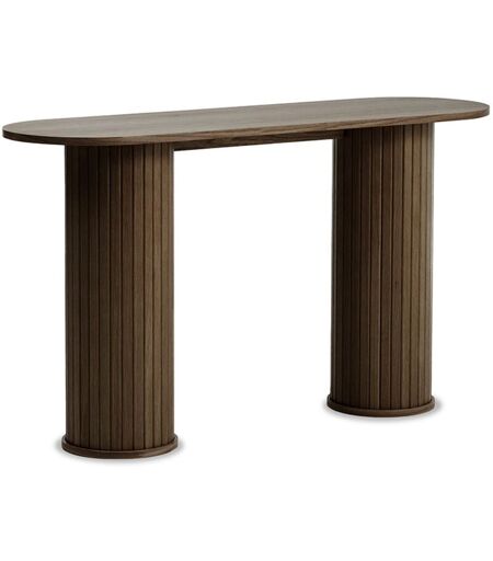 Adoptez la console en bois strié pour meubler un couloir, un hall d'entrée, un bureau ou une chambre. Les pieds de cette console présentent un effet "bloc" très tendance. Cette console design appartient à la collection Alba, qui se décline en bois naturel, en bois foncé ou noir. Points forts : Effet bois strié Pieds "massifs" originaux Caractéristiques Générales : Largeur : 130 cm Hauteur : 75 cm Profondeur : 40 cm Poids : 25 kg ...