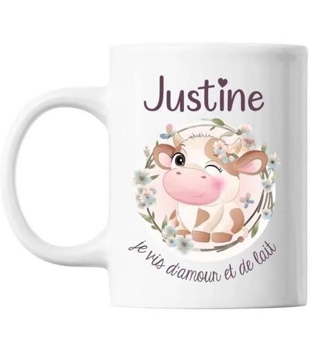 Mug Justine Amour Et Biberon De Lait Vache Tasse Cadeau Bébé Enfant