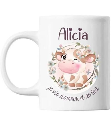 Mug - Alicia - Amour Et Biberon De Lait Vache - Céramique - 325 Ml - Résistant Lave-Vaisselle