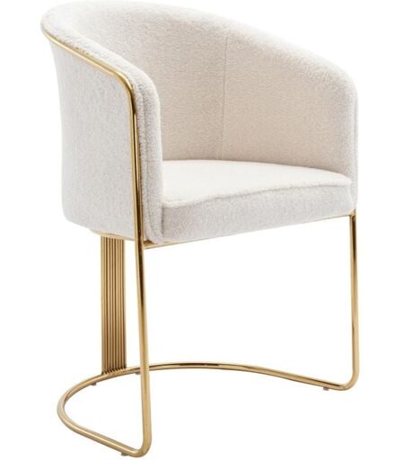 Pascal Morabito - Chaise avec accoudoirs en tissu bouclette et métal - Blanc et doré - josethe de