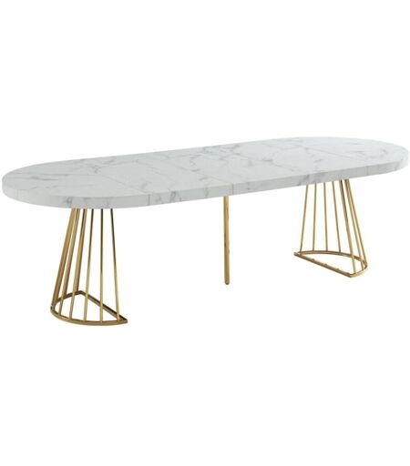 Vente-unique - Table à manger extensible 2 à 12 personnes en mdf et acier - Effet marbre blanc et doré - firela