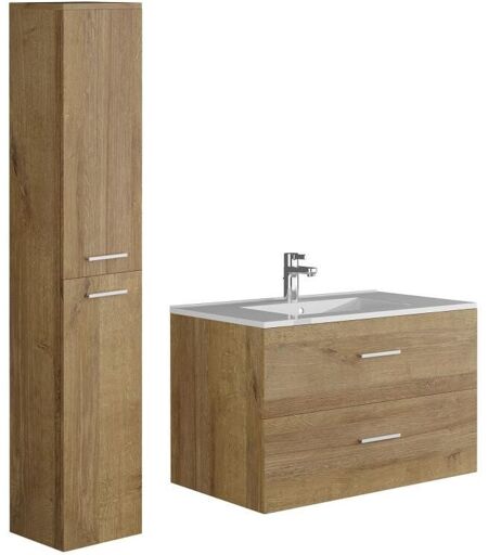 1 x Colonne salle de bain KAYLA Caractéristiques Couleur (nuance) : Naturel clair Matière : Panneau de particule Finition : Stratifié 2 portes Porte battante Type de rangement : Etagère Nombre d'étagères : 4 Type de pose : à suspendre Gamme : Good for Planet Produit éco-responsable : Fabriqué en Europe À monter soi-même Dimensions Longueur : 30 cm Hauteur : 160 cm Profondeur : 25 cm 1 x Meuble sous vasque KAYLA Caractéristiques Couleur (nuance) : Naturel clair Matière : Panneau de particule Finition : Stratifié Robinetterie incluse : NON Type de rangement : 2 tiroirs Tiroir coulissant soft close Type de pose : à suspendre Gamme : Good for Planet Produit éco-responsable : Fabriqué en Europe À monter soi-même Dimensions Longueur : 80 cm Hauteur : 47 cm Profondeur : 45 cm 1 x Vasque à encastrer MOTIAC Caractéristiques Couleur (nuance) : Blanc Matière : Céramique Epaisseur pierre : 17 mm Finition : Poli, Brillant Robinetterie incluse : NON Type de pose : à encastrer Type de vasque : ...