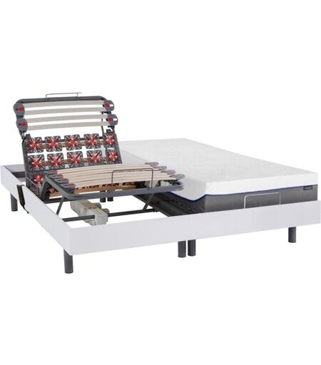 Vente-unique - Lit électrique de relaxation lattes et plots + matelas mémoire de forme - 2 x 90 x 200 cm - Blanc - dionysos de dreamea