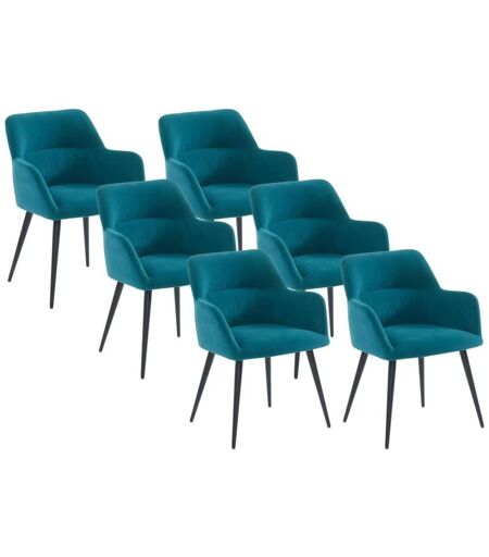 Vente-unique - Lot de 6 chaises avec accoudoirs en tissu et métal noir - Bleu - heka