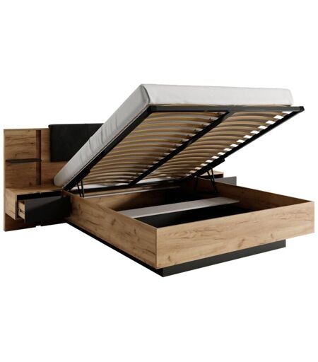 Vente-unique - Lit coffre avec chevets 140 x 190 cm - Avec LEDs - Coloris : Naturel et anthracite - elynia