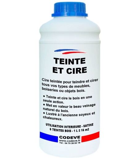 Codève Bois - Teinte Et Cire - 1 l - Codeve Bois - Chêne moyen - Pour Teindre Et Cirer Tous Vos Types De Meubles, Boiseries Ou Objets En Bois.