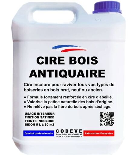 Codève Bois - Cire Antiquaire - 4x5 l - Codeve Bois - Pour L'entretien De Toutes Vos Boiseries En Bois Brut, Neuf Ou Ancien.