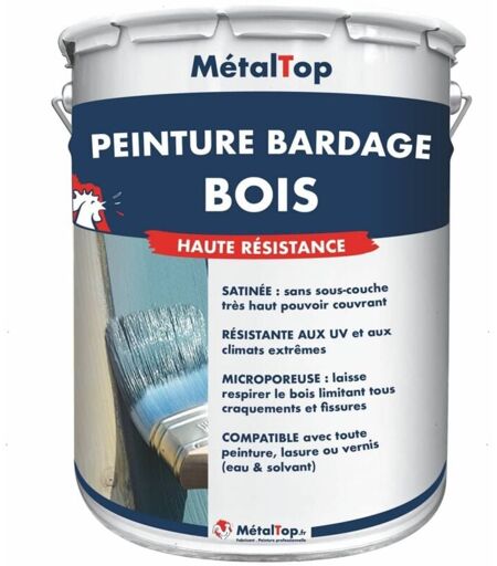 POINTS FORTS Qualité Professionnelle - Fabrication Française Application : Brosse, pinceau, rouleau, pistolet, airless Protection intérieur / extérieur jusqu'à 12 ans Se conserve 3 ans à l'abri du gel et de la chaleur Prix direct fabricant - Contactez-nous pour tout renseignement ou conseil Aspect : Satiné Sec au toucher : 20 min Recouvrable : 4 h Excellent pouvoir couvrant - Facile d'application Peinture bardage bois satinée pour décorer et protéger vos bois neufs et anciens. RENDEMENT Pinceau/Rouleau: ± 9 m2 / l en 1 couche - Prêt à l'emploi Pistolet: ± 11 m2 / l en 1 couche - Dilution 10% Bombe aérosol: 1 à 2 m² / 400ml - Prêt à l'emploi DILUANT & NETTOYAGE Eau. RECOMMANDATIONS Vérifier que le support soit sain propre et sec et exempt de matières nuisibles à l'adhérence. Lessiver ou décaper les anciennes cires, lasures, peintures ou vernis pour une bonne adhérence. Travailler sur des bois neufs ou remis à blanc avec une teneur en humidité de moins de 20 %. Mélanger mécaniquement ...
