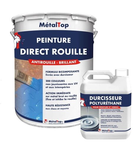 POINTS FORTS Qualité Professionnelle - Fabrication Française Application : Brosse, pinceau, rouleau, pistolet, airless Protection intérieur / extérieur jusqu'à 12 ans Se conserve 3 ans à l'abri du gel et de la chaleur Prix direct fabricant - Contactez-nous pour tout renseignement ou conseil Aspect : Brillant Sec au toucher : 30 min Recouvrable : 4 h Excellent pouvoir couvrant - Facile d'application Peinture Direct Rouille, brillante sans sous couche pour rénover vos métaux rouillés. Peinture polyuréthane bi composant livrée avec durcisseur RENDEMENT Pinceau: ± 10 m2 / l en 1 couche - Prêt à l'emploi Rouleau: ± 10 m2 / l en 1 couche - Prêt à l'emploi Pistolet: ± 12 m2 / l en 1 couche - Dilution 10% DILUANT & NETTOYAGE Diluant bi composant . RECOMMANDATIONS Vérifier que le support soit sain, propre et sec et exempt de matières nuisibles à l'adhérence. Bloquer et neutraliser la rouille avec le dérouillant phosphatant ou en ponçant à minima. Mélanger en respectant les proportions : 1 pot ...