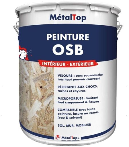 POINTS FORTS Qualité Professionnelle - Fabrication Française Application : Brosse, pinceau, rouleau, pistolet, airless Protection intérieur / extérieur jusqu'à 12 ans Se conserve 3 ans à l'abri du gel et de la chaleur Prix direct fabricant - Contactez-nous pour tout renseignement ou conseil Aspect : Velours Sec au toucher : 30 min Recouvrable : 2 h Excellent pouvoir couvrant - Facile d'application Peinture OSB, 182 teintes aux choix, pour protéger et décorer votre bois en OSB. RENDEMENT Pinceau: ± 10 m2 / l en 1 couche - Prêt à l'emploi Rouleau: ± 10 m2 / l en 1 couche - Prêt à l'emploi Pistolet: ± 11 m2 / l en 1 couche - Dilution 10% DILUANT & NETTOYAGE Eau. RECOMMANDATIONS Vérifier que le support soit exempt de tout ce qui pourrait nuire à l'adhérence : humidité, salissure. Lessiver ou décaper les anciens vernis, lasures, cires, peintures pour une excellente adhérence. Appliquer votre peinture sur un bois OSB sain et idéalement remis à blanc, puis recouvert d'un primaire. Réaliser ...