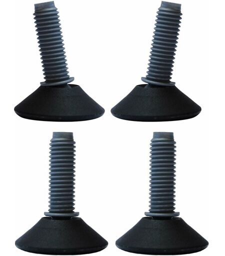 4x Pied niveleur orientable / inclinable ; Filetage = M10 ; Vis utile = 30mm ; Hauteur totale = 42,5mm ; Diamètre base = 50mm ; Hauteur base B = 12,5mm ; Charge statique maximale = 150kg ; Axe en polyamide (PA6.6) et base en polyéthylène de haute densité noir (PEHD) ; Apte pour les environnements corrosifs, sanitaires et alimentaires ...