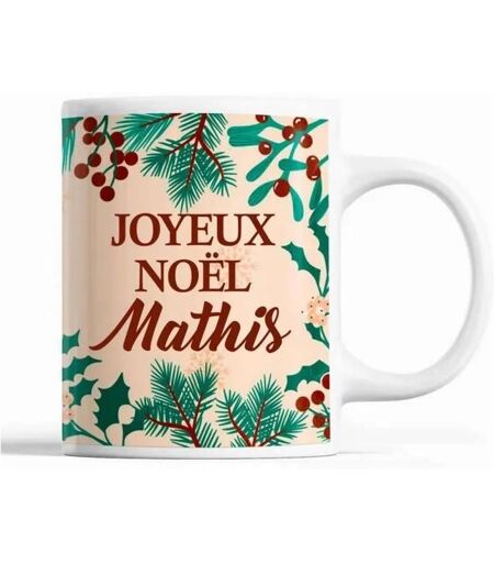 Tasse Noël Mathis Beige Mug Prénom Idée Cadeau Secret Santa