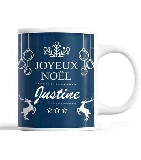 Tasse Noël Justine Bleu Mug Prénom Idée Cadeau Secret Santa