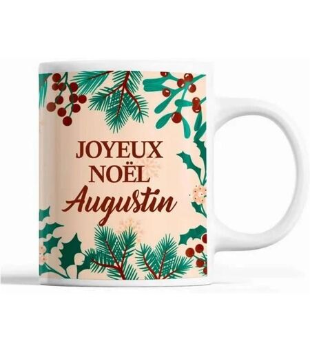 Tasse Noël Augustin Beige Mug Prénom Idée Cadeau Secret Santa
