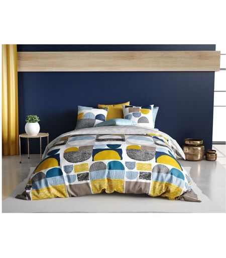 Housse de couette + 2 taies Pour lit 2 personnes Dimension de la housse de couette: largeur 220 x longueur 240 cm + 2 Taies d'oreiller : 63 x 63 cm. Creez une ambiance coloree et moderne dans votre chambre Composition: Qualité supérieure 100% Coton un tissu souple et résistant de qualité supérieure Finition: Coton Imprimé 57 fils/cm² Entretien : lavable 40° laver et repasser sur l'envers afin de proteger les couleurs Couleur : blanc , bleu, jaune, gris Finition housse de couette : bouton Finition taie d'oreiller : Portefeuille Produit certifié Oeko-Tex® : Le label Oeko-Tex® garantit que les articles testés et certifiés ne présentent pas de substances nocives substances pouvant nuire à la santé. Les accessoires présents sur le visuel ne sont pas vendus avec la parure. Recommandation : Laisser tremper le linge une nuit dans une bassine d'eau froide afin de dissoudre les apprêts et les pigments résiduels de teinture. Nous vous conseillons d'utiliser le gros sel comme fixateur avant le ...