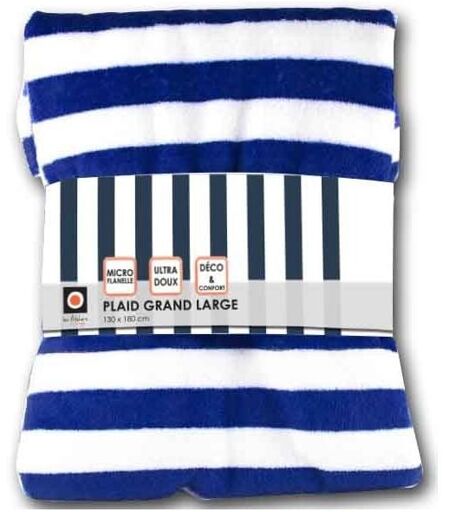 Plaid Grand large a rayures bleu et blanc Agreable au toucher et tendance ce plaid s'adaptera parfaitement a votre canape et a la decoration de votre interieur. Dimension : Largeur 130 cm x Longeur 180 cm Composition : 100% coton - 260 gsm Finition : a rayure Entretien : Lavage doux Retrouvez des coussins dans la meme Collection. Les accessoires présents sur le visuel ne sont pas vendus avec le plaid. ...