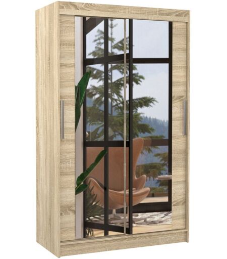Les Tendances - Petite armoire moderne de chambre à coucher bois clair avec 2 portes coulissantes miroir Ibizo 120cm