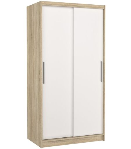 Les Tendances - Petite armoire de chambre à coucher bois clair 2 portes coulissantes blanches Kilane 100cm