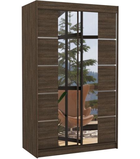 Les Tendances - Petite armoire design de chambre à coucher 2 portes coulissantes marron et miroir Kinzo 120cm