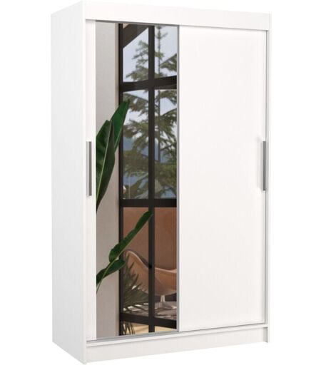 Les Tendances - Petite armoire de chambre 2 portes coulissantes 1 bois blanc 1 miroir Roba 120cm