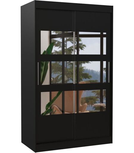Les Tendances - Petite armoire de chambre à coucher 2 portes coulissantes noir avec 6 miroir Kolida 120cm