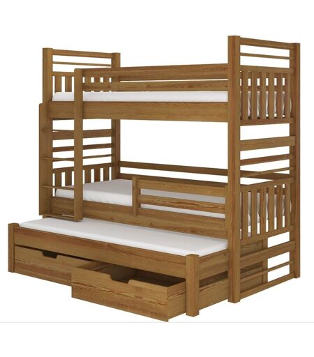 Les Tendances - Lit superposé 3 couchages avec 2 tiroirs de rangement bois oak 90x200 Niko
