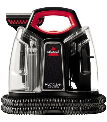 Le nettoyeur a eau portatif Multiclean Spot & Stain de Bissell fait disparaître les taches de vos tapis, moquettes et autres tissus. Il est alimenté par secteur et dispose d'un cordon de 5 metres. Les outils inclus sont un suceur plat, une petite brosse, une grande brosse. ...